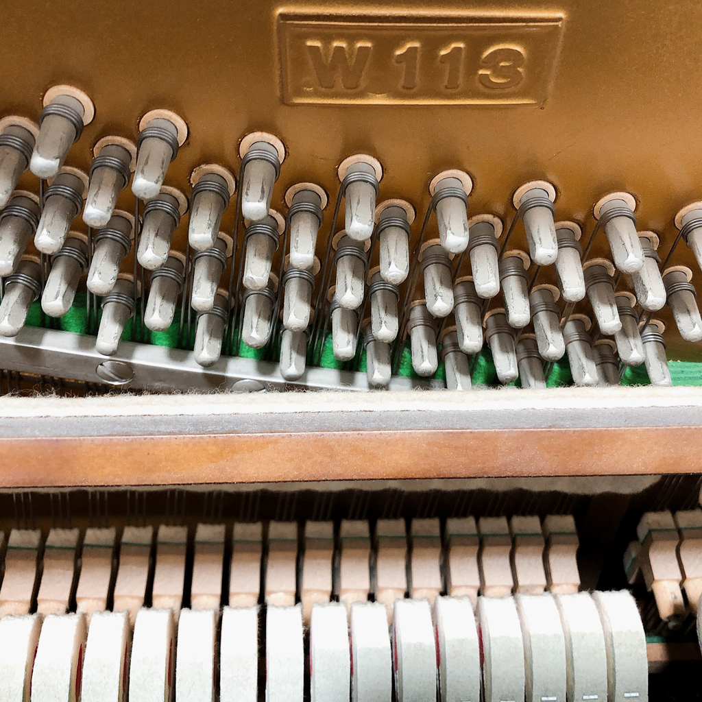 Dây đàn được chế tạo bằng thép cường độ cao hội tụ yếu tố dẻo dai, ít cacbon nhất, dây có đường kính khác nhau với tổng số lượng dây đàn trên cây đàn piano W113 là 220 dây.