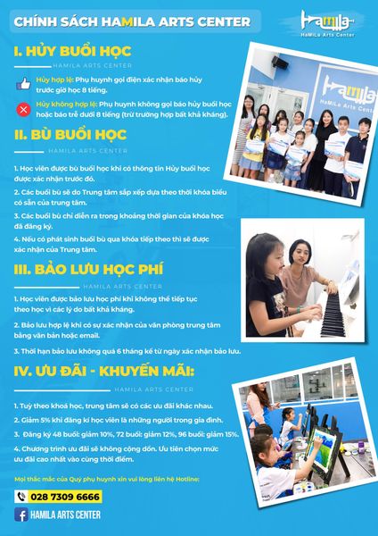HAMILA ARTS CENTER chính thức gửi đến Quý Phụ Huynh và các học viên Chính sách khi đăng ký khóa học tại Hamila:
